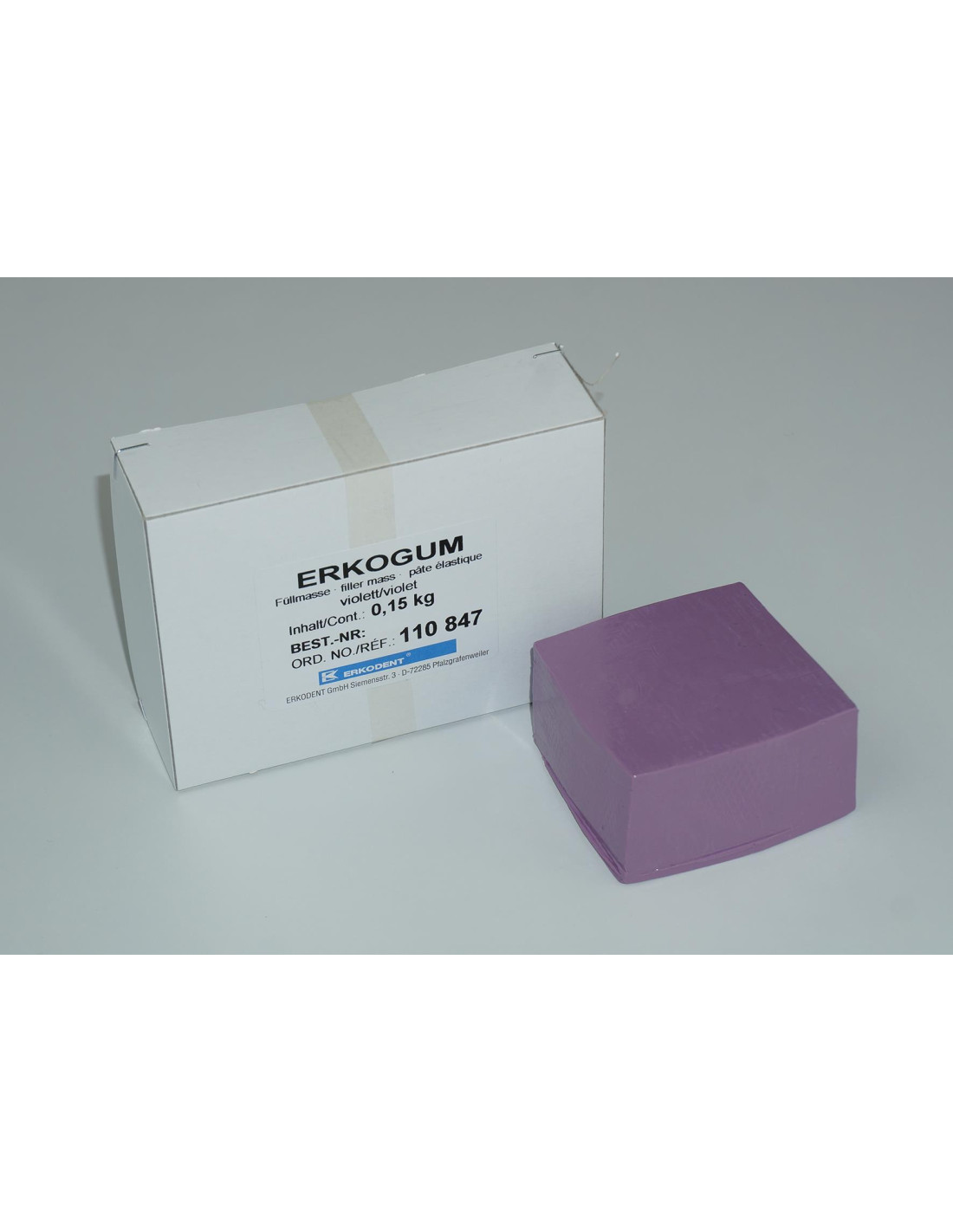 Material para bloquear, lila, reutilizable y permanentemente moldeable. Resistente a la temperatura durante el proceso de termoformado. Ideal para la protección de dientes residuales y para rellenar socavados. Por ejemplo en la fabricación de Silensor-sl.